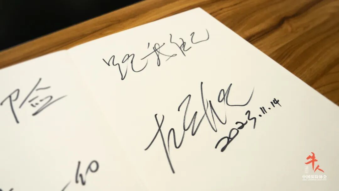 左志锐俯下身,在中国探险协会“牛人”留言簿写下“跑我自己”四个字,字迹洒脱,自由奔放。
