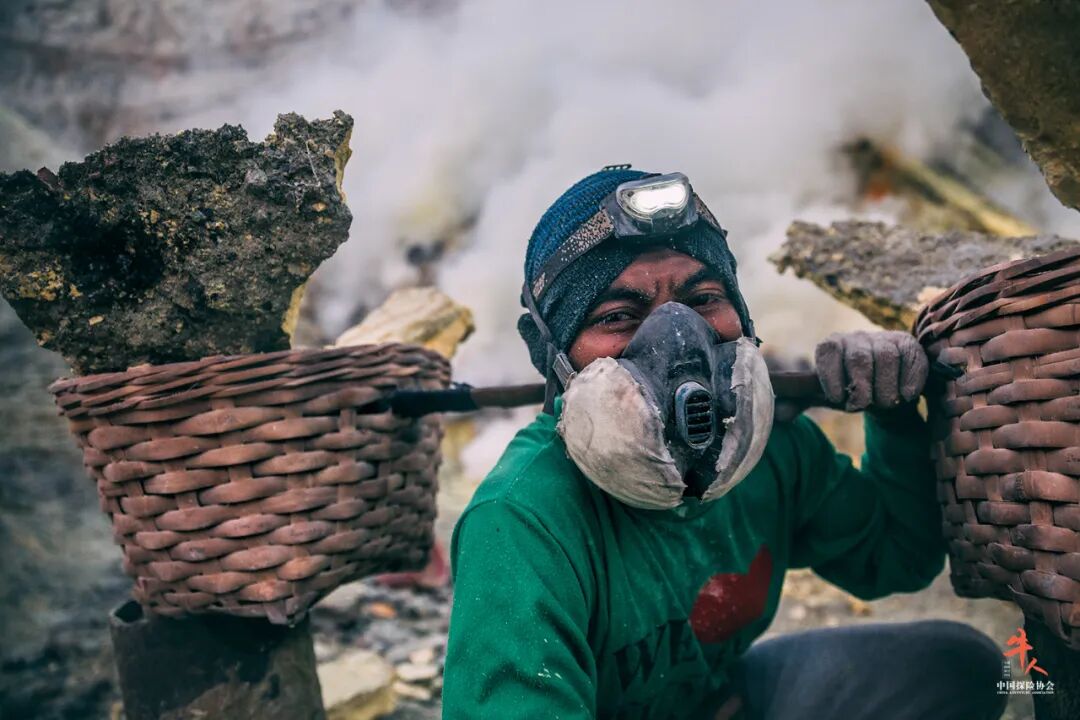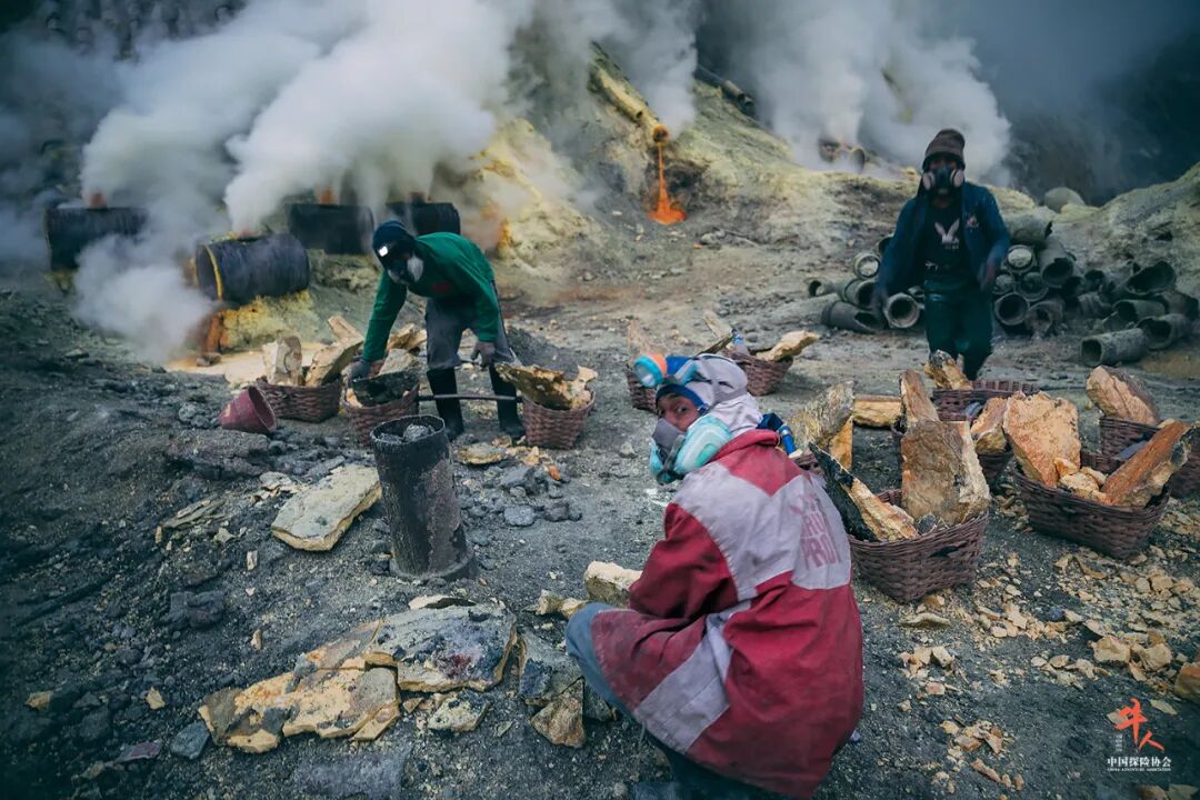 照片中,毒气弥漫的环境下,硫磺工人戴着简单的防毒面具在艰辛劳作,令人唏嘘。