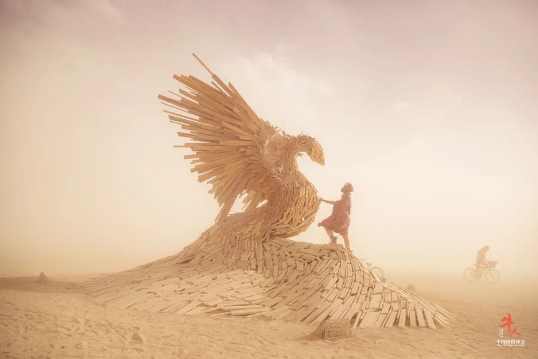 荒漠中的凤凰装置吸引了黑石城的居民互动,丝毫不在意沙尘暴肆虐
