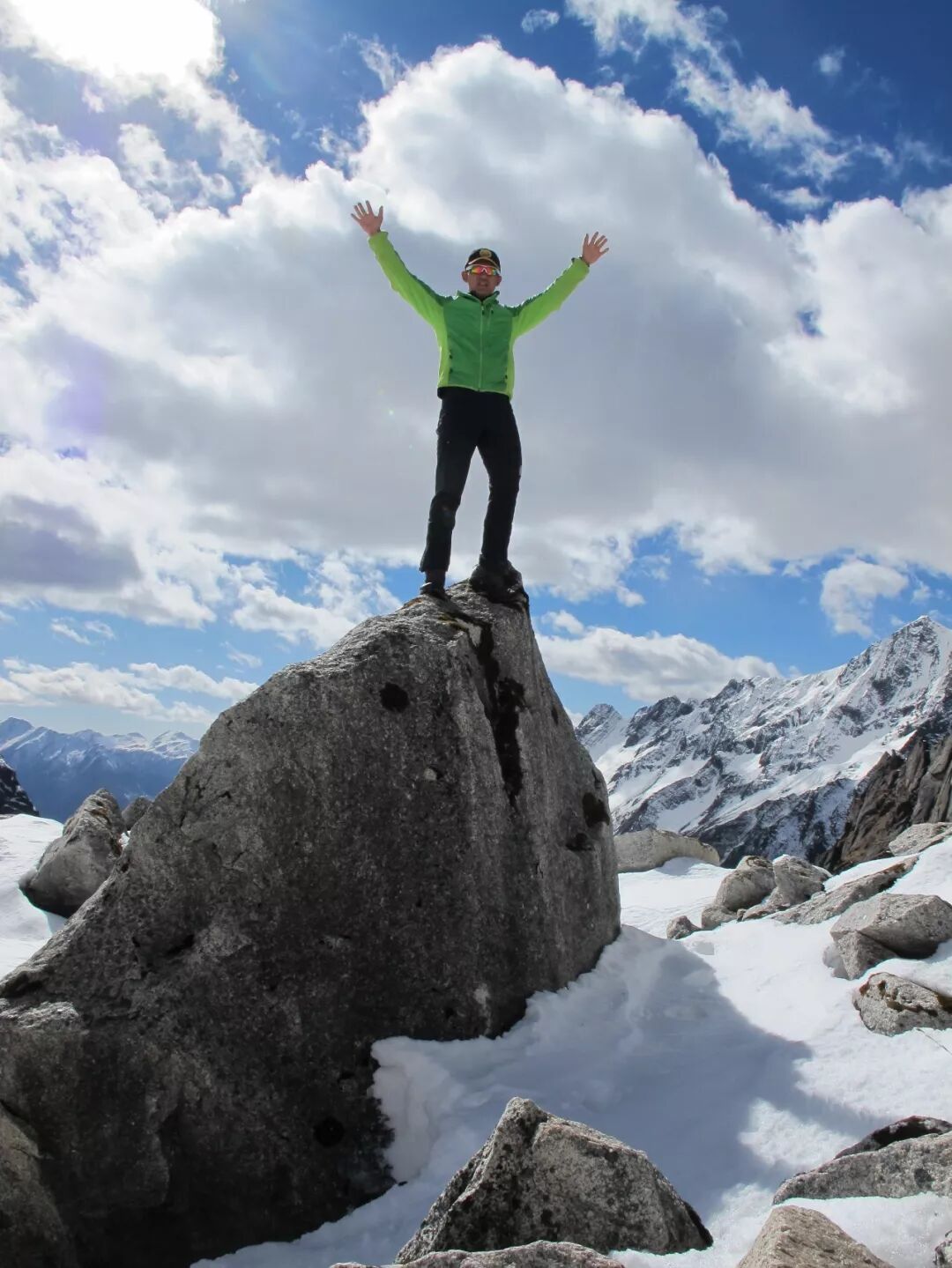 2:这个其实阶段也是比较明显的,就说登山从2003年开始到2005年,这个阶段是比较冒进的,因为从2003年开始第一座山就登顶了,虽然高反,下山的时候才吐了,登的时候没问题。第二座、第三座、第四座、第五座相继都登顶了,而且海拔也越来越高,难度也越来越高。那个时候算是一种自我膨胀期。直到2005年我第一次去叫慕士塔格7500多米的雪山,那个时候我真正遇到了困难,因为我是有一个机会去做高山协作,给日本队背东西,我是有可能有机会跟日本队一块登顶的,但最后自己没有把握住。
