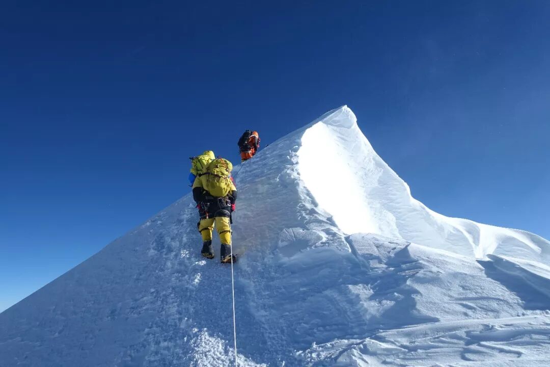 2:这个其实是在海外登山最也意思的一件事情。我们在高海拔登山的时候,会跟各国的向导我们会聚一起,聚在一起 我们会像小的party一样,我们也会交换各国的信息,了解各国的文化。