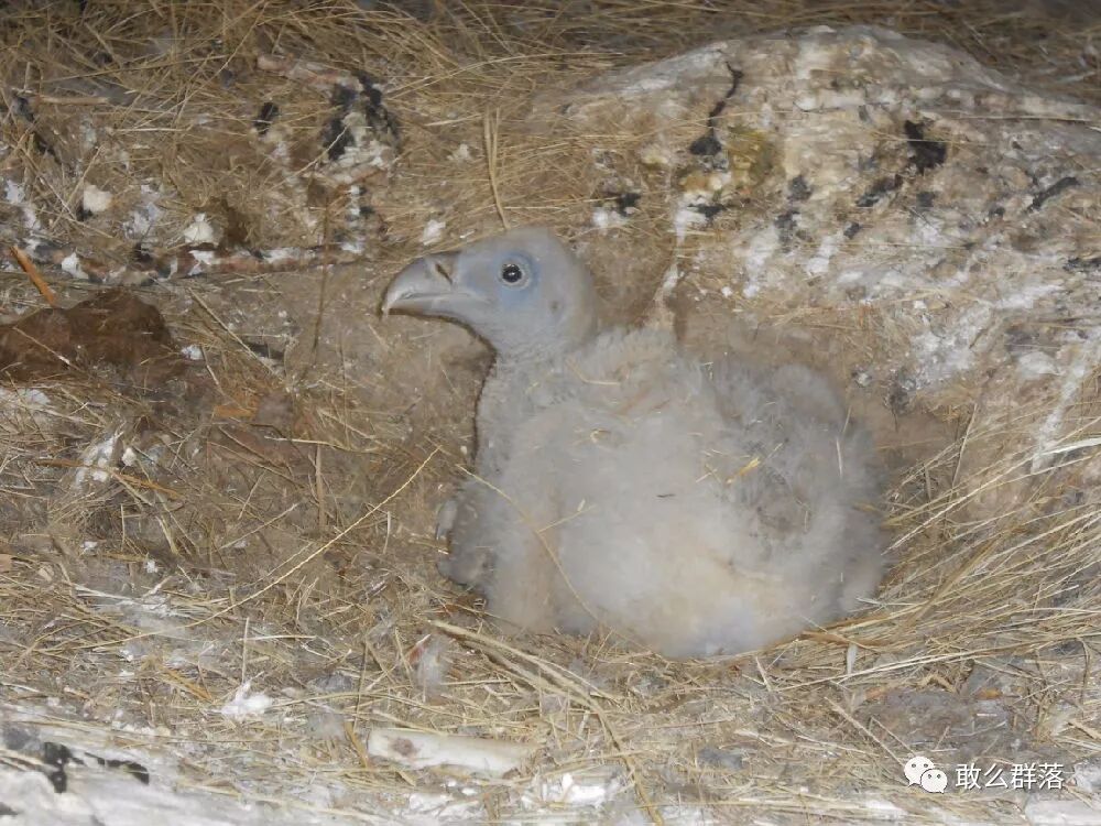 当他终于爬上峭壁时,眼前所见令他感到难以置信。山下的望远镜里的小小黑色斑点,竟是一个外径2米、深约1.5米的大山洞。一只灰突突的小幼鸟蜷缩在空荡荡的巢穴里面,身下铺了一层干草。