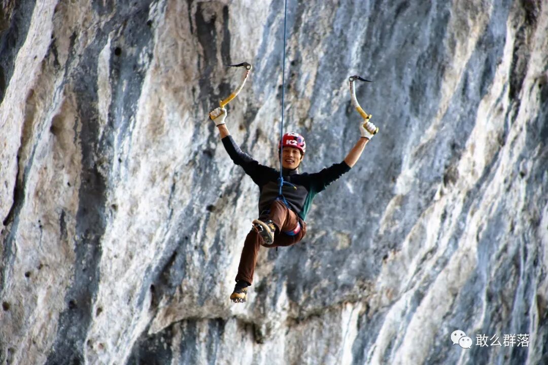 2:简单来说是岩壁攀登,很多人都知道岩壁攀登,也知道攀冰。攀冰时用的冰镐,长得像斧头,干攀也使用这个在岩壁上进行攀登。