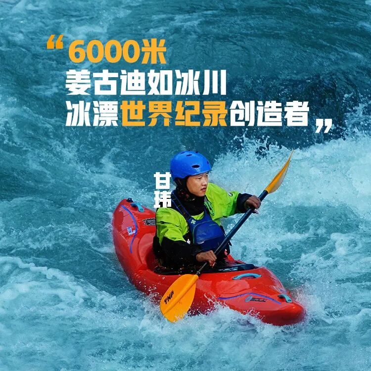 2015年,适逢“长江漂流”和“黄河漂流”30周年整,当年的造梦之地玉树,来了一群怀揣漂流梦想的年轻人,甘玮、李晶晶、冼剑威和袁晓锦。他们采用了冰漂的形式,从海拔6000米姜古迪如冰川中高30米的冰顶处、沿约45度坡跃身而下,一举创造了姜古迪如冰川冰漂世界纪录。
