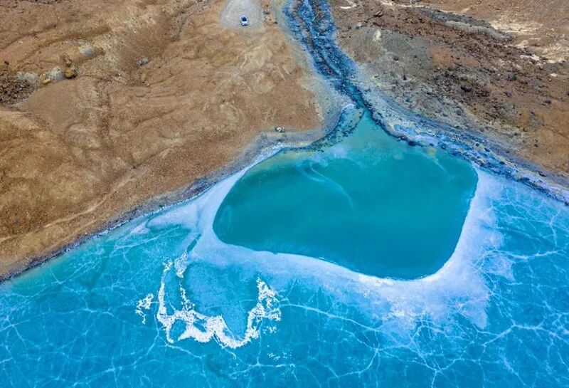 普莫雍措可喻为破碎晶莹的天空之镜,湖面的冰虽然结得厚厚的,但却能看得透透的,湖底下的世界一览无余,蓝冰中的裂痕、气泡也都可以看得清清楚楚,行走其上,有种一眼万年的广阔感!