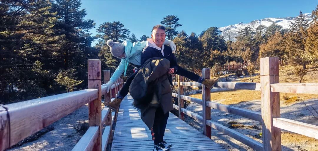 这个景点不大甚至有些迷你,环湖一圈的木栈道可以让你领略不一样的风景,密林、杜鹃林、壮阔的幽蓝山谷、倒映着蓝天的冰冻湖面,一切都那么美并没有因为冬天的来到而打折扣!因为没有其他游客,我们可以尽情地从各种角度品味、欣赏它全方位的美好。