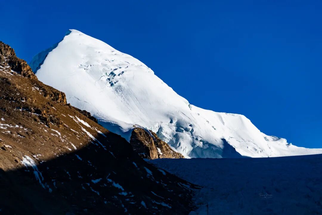 我们的第一站——卓木拉日雪山。前一天是远观多庆措身后的卓木拉日雪山,而今天我们行至卓木拉日雪山脚下,近距离一睹她的风采。卓木拉日雪山又称神女峰,位于亚东县帕里镇,山高约为7600米,是早古生代地层和喜玛拉雅山花岗岩所组成的断块山系。