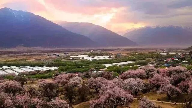 20万株平均树龄360岁的野生桃树随意站在波堆藏布两岸的山谷田园中,与雪山、江流、湖泊相映。