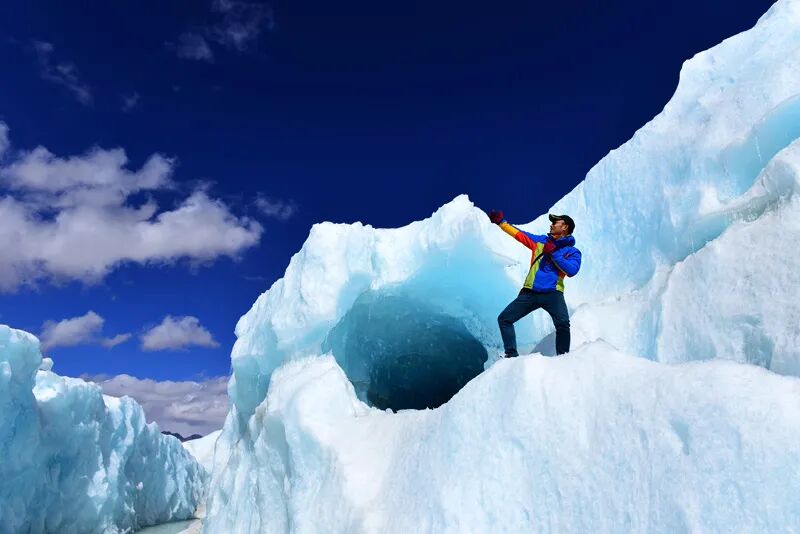 走近晶莹剔透的蓝色冰川,仿佛穿越时空,来到了另一个星球,抚摸这些触手可及的千年冰川,纯净的冰芯闪耀着蓝色的光芒,在高原强烈阳光照耀下,产生的极热与极寒的奇妙感觉,一定会让你终身难忘。