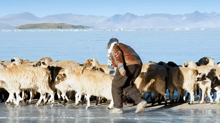 曾展现过村民赶着羊群走在普莫雍措冰面上的场景