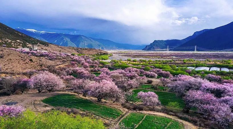 雅鲁藏布大峡谷内,桃花盛开,南迦巴瓦露出真容
