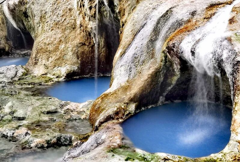 陈塘九眼温泉—又称为雪雄玛温泉。它与西藏的其他温泉不同,是从半山坡的一片树林后面流出来的,沿山势自然分成九股,分别流进泉水常年冲刷形成的九个小洞里,因此而得名“九眼温泉”。