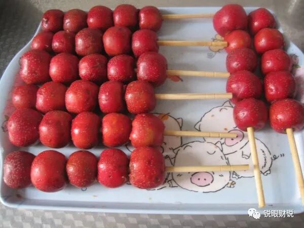 串制山楂:准备竹签,将山楂由小到大串起来。这样的设计不仅方便食用,也美观有趣。