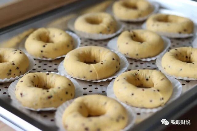 将搓好的小面团进行整形,形成类似贝果的圆环状,再次醒发片刻。