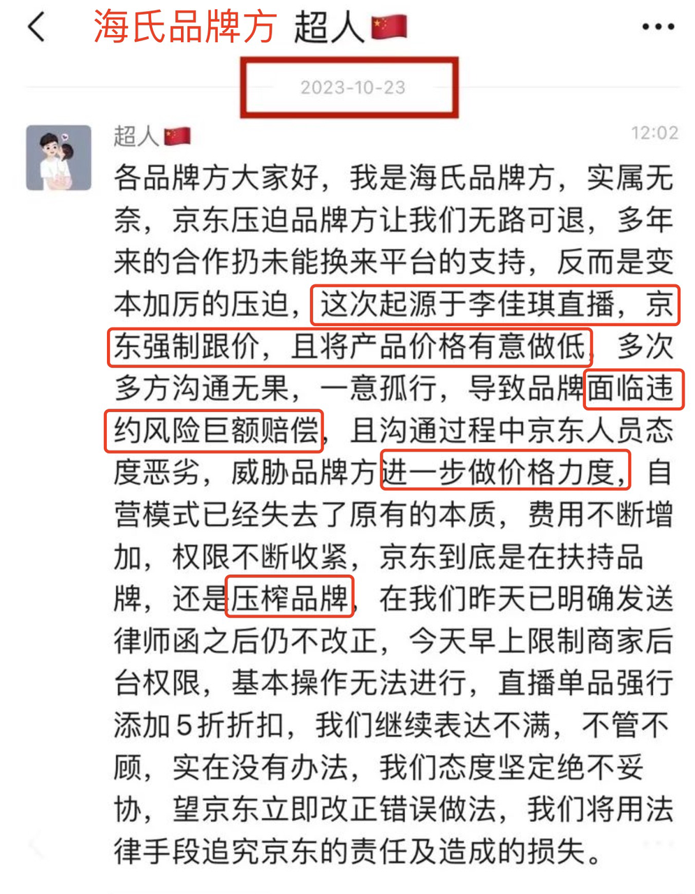 然而,京东此次自掏腰包补贴,海氏的产品在京东上破价了。海氏就面临了协议违规的局面要赔钱给李佳琦, 海氏和京东在沟通中极限拉扯了多个来回,反正没谈拢。