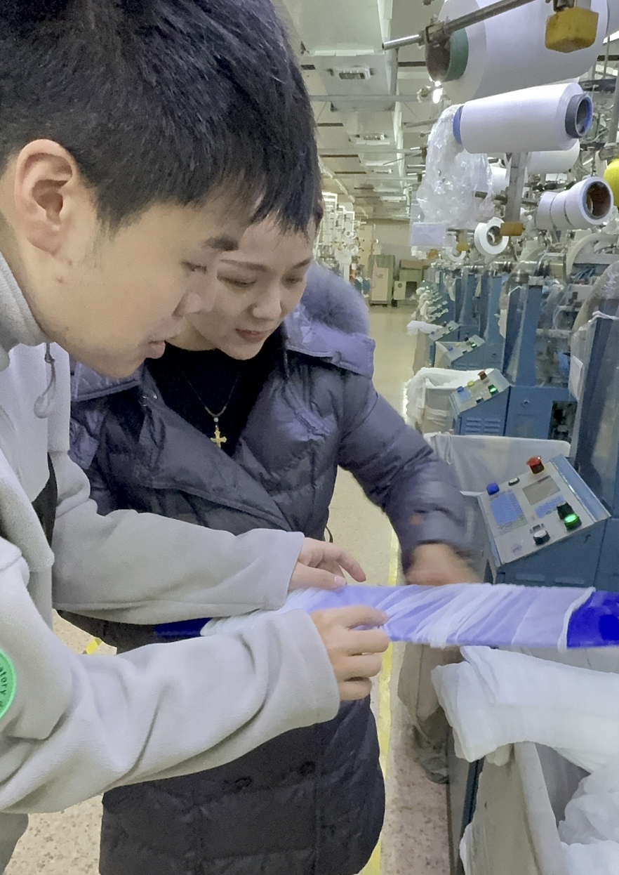 但是做丝袜非常复杂,要40个车间打配合。啥裤腰、裤裆、裤腿、脚指尖……都要分开纺纱、缝合。