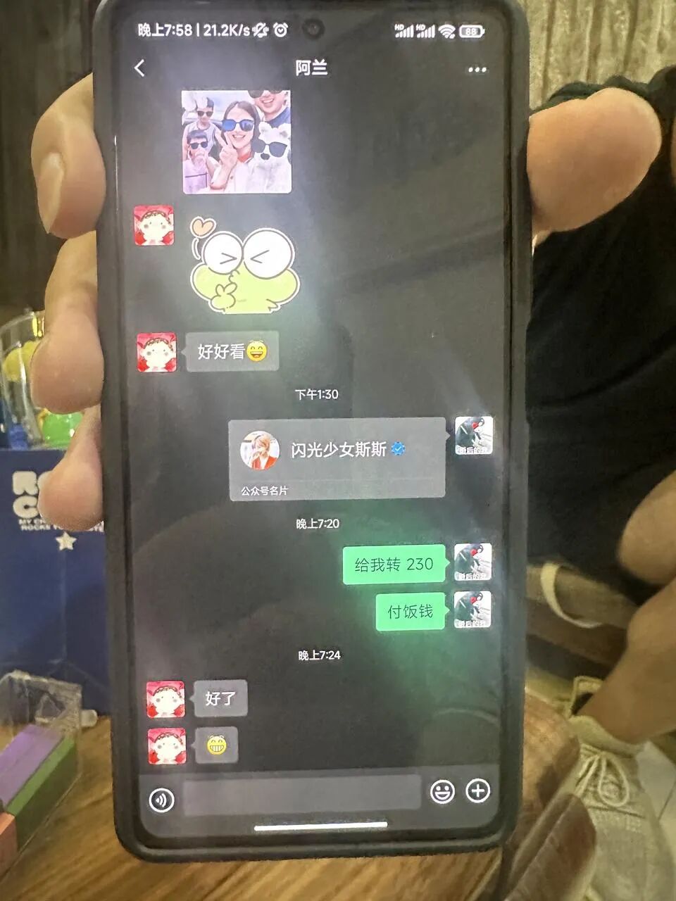 小黑子:哈哈,朋友给我转 230 付饭钱。