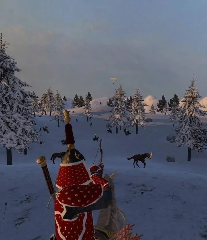 一路上你们没人说话,耳边只听得到刀枪摩擦的声音和马蹄踩在雪地的声音,你的心里泛起一丝胆怯……