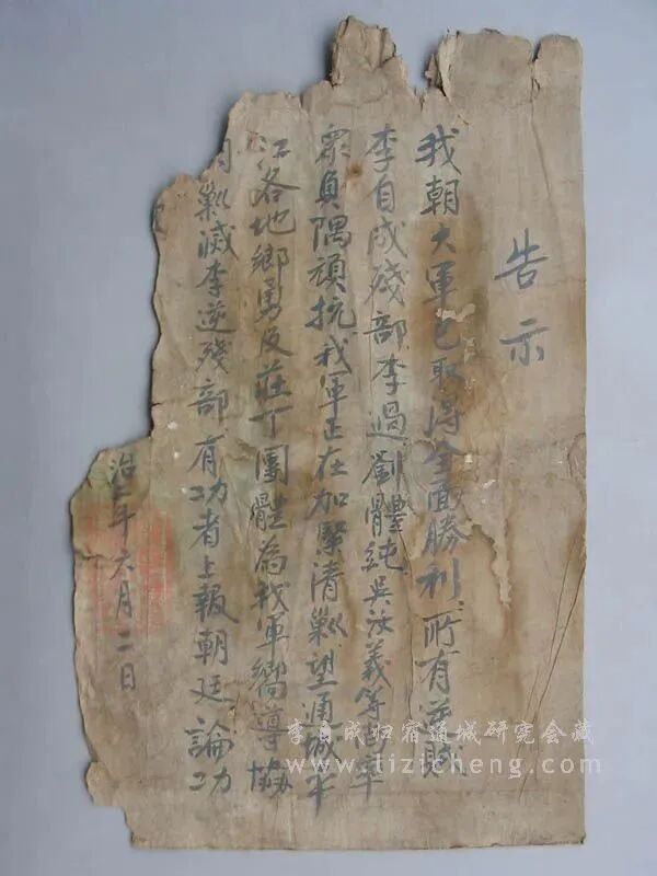 这块石牌上赫然写着“大顺王,永昌元年”,如此不伦不类,属实让人惊叹!为什么这么说,李自成于1644年一月在西安称帝,国号大顺,年号永昌。带大顺字样,就说明李自成已经称帝,而石牌上还是“王”,二者矛盾,这是其一。