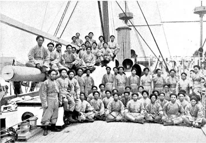 1887年初,李鸿章派琅威理及邓世昌、叶祖珪、林永升、邱宝仁率400余名官兵,乘招商局“图南”轮,赴英德接收军舰。4人分别任“致”“靖”“经”“来”号管带。