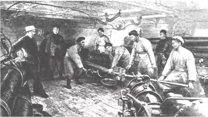 ▲“经远”号水兵在洋员指挥下装填鱼雷