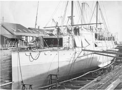 ▲“康济”号是一艘训练船,管带是萨镇冰。康济”号战后唯一被日军释放回来的船,它载运着丁汝昌等人的遗骸和投降官兵回籍。