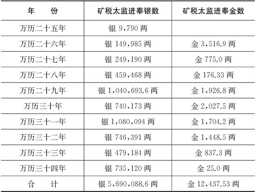 万历一共在矿税上收了多少钱呢?十年一共收了白银约569万两,金约12400两。这个数字其实不小,大约相当于国家财政一年的收入。