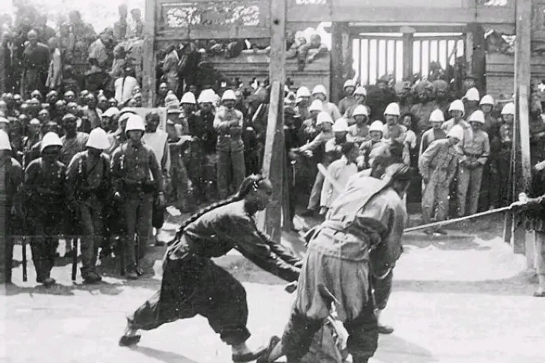 八国联军入侵的初期。一些拳民对刀枪不伤的说法深信不疑,带头向洋人冲击,但在洋人的现代武器面前,纷纷倒地。后队中仍有人继续冲击,也在很快的时间内中弹。余下的人这才知道,这是真的会死,迅速逃散。