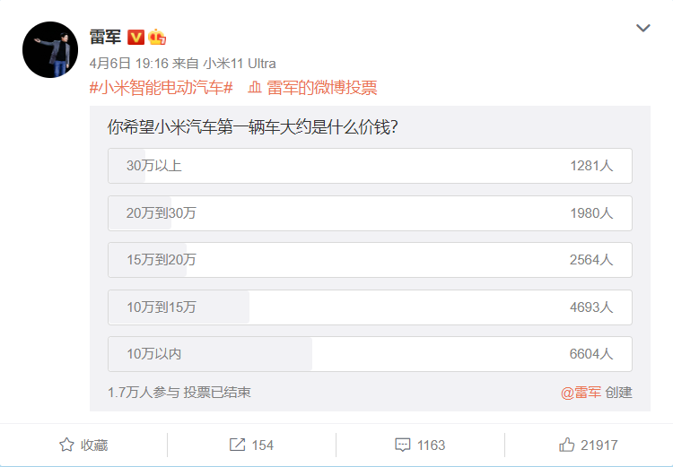 如果用阴谋论的角度来看的话,小米汽车这次价格爆料,也有可能是小米团队对外测试汽车价格接受度进行的社交媒体营销。看看大家对小米汽车定价的态度。
