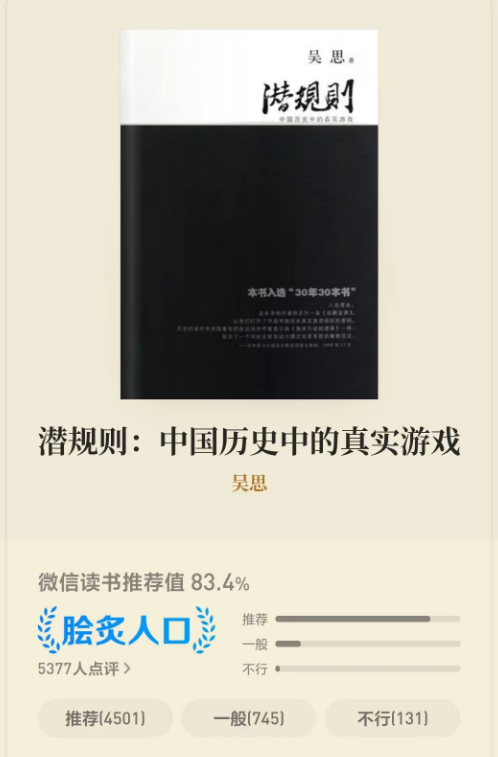 ③特别难受时,外放微信读书听书,听完大半本《潜规则:中国历史中的真实游戏》;