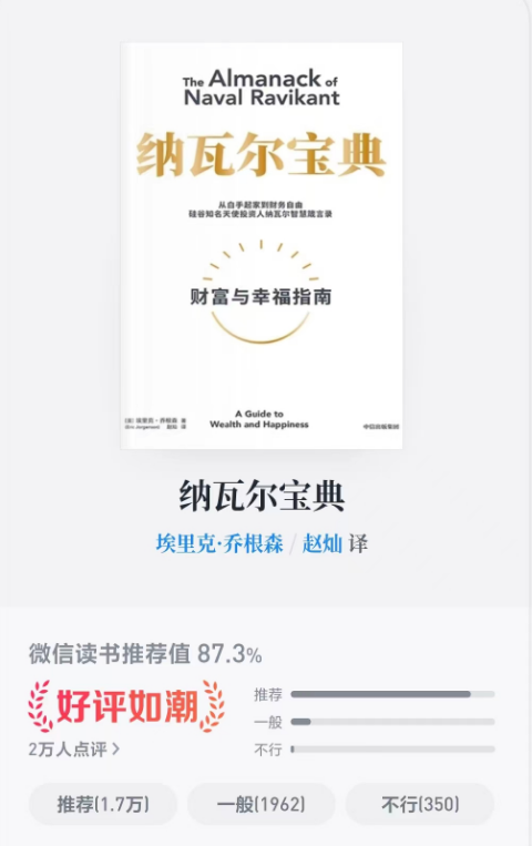 在我的职业生涯中,无论是做编辑、市场营销,还是做品牌营销、自媒体,很多职场经历与困惑,都被《纳瓦尔宝典》给解开了。