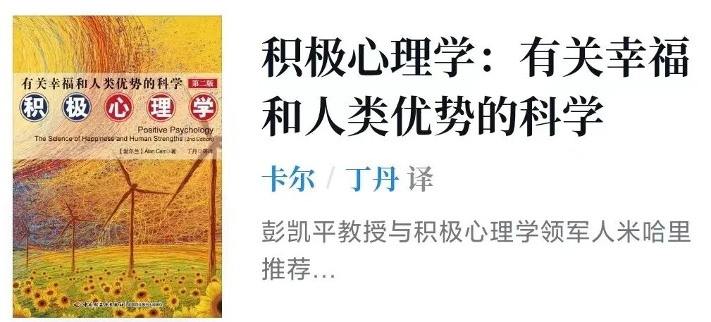 最后推荐一本我曾经讲过的书:《积极心理学》,能了解人类积极心理的机制,引导自己寻找生命中的积极元素。阅读有一定门槛,可慢慢看。