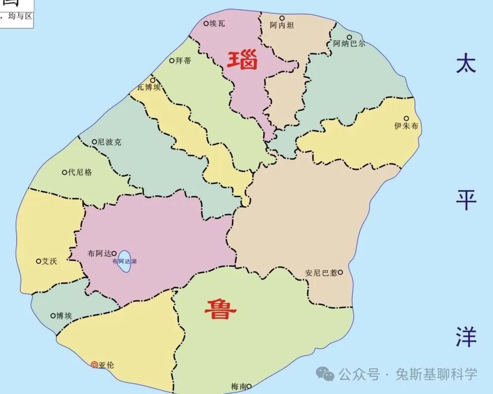 有趣的是,瑙鲁这么一个小国还划分了14个区,其中最大的区面积有3.1平方公里,最小的区面积只有0.5平方公里。看着地图上的这些弯弯曲曲的地区分界线,真有些搞不懂!这么小的一个国家,为什么还要划分这么多地区呢?有何意义?