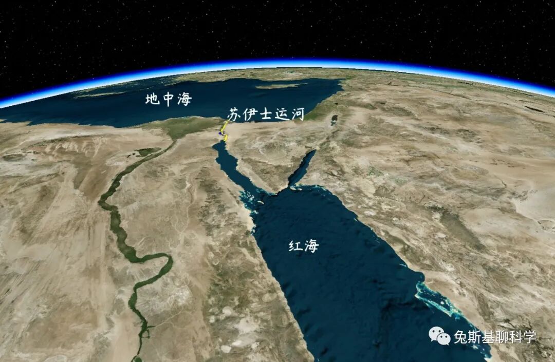 从地图上看,它是亚洲和非洲的分界线。运河的东面是亚洲,西面是非洲。苏伊士运河北端和大西洋的属海地中海相连接,南端和印度洋的属海红海相连接。因此苏伊士运河就像是一个十字路口,连接着亚洲和非洲,大西洋和印度洋。