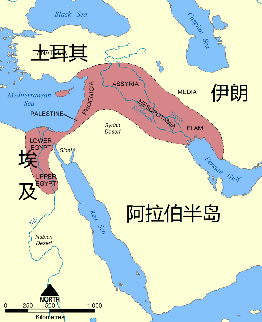 犹太人生活在西亚和北非之间,这里大部分都是沙漠,只有一小串地方适合生存,叫“新月沃地”,之所以起这么个名字,是因为它西起埃及,东至波斯湾,呈一个新月的形状。