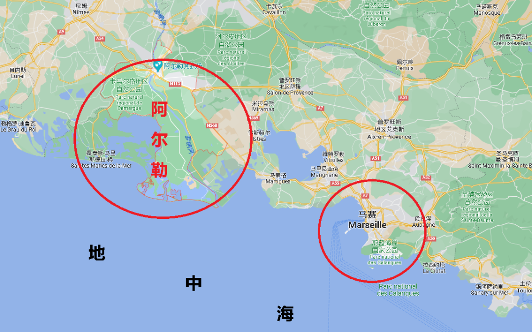 不过,这里其实并不是最好的选择,旁边不远的阿尔勒条件更好,因为阿尔勒不仅是海港,而且是罗纳河的入海口。