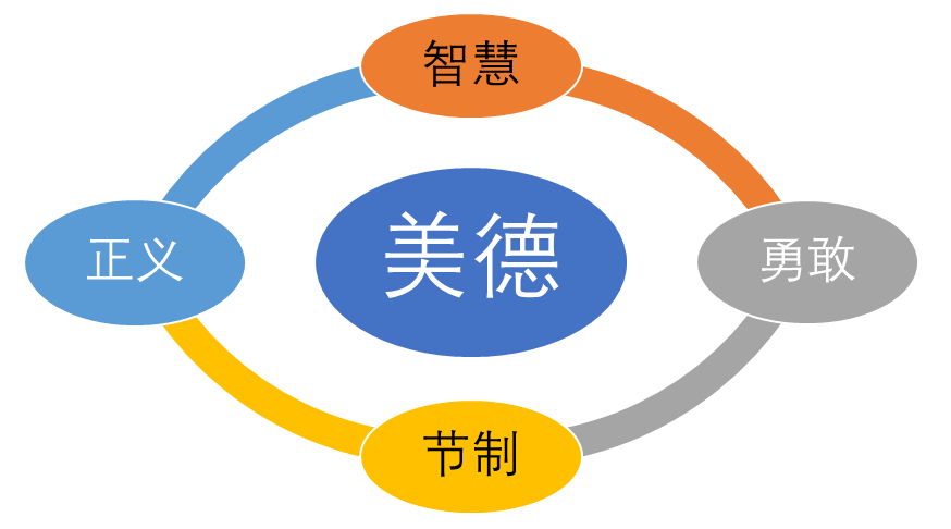 这其实是西方哲学的老生常谈了,他们认为美德一共有四种,分别是:智慧、勇敢、节制、正义,合起来被称为“四德”。
