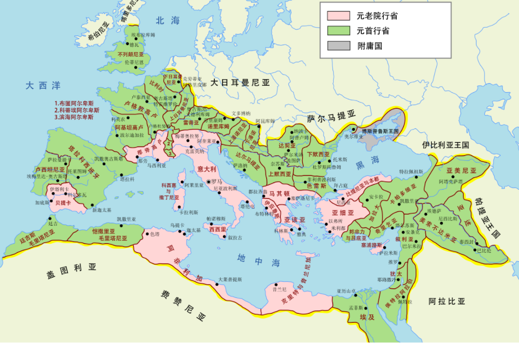 由于元老院行省都在帝国的内部,无需驻军,而元首行省都在边疆,需要重兵把守,所以就等于解除了元老院的军权。