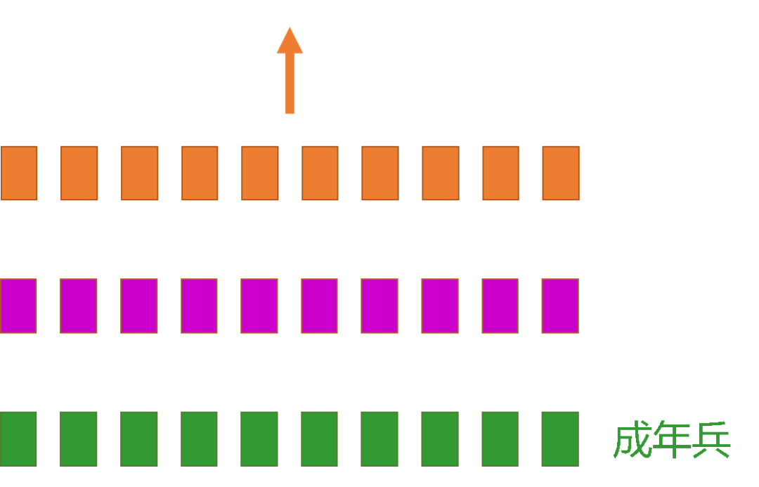 装备精良的编为重步兵,装备一般的编为轻步兵,没有装备的编为辅助兵。