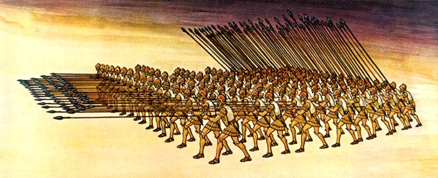 而马其顿人在此基础上做了进一步改进,他们加长了长矛,这样就能在正面组成巨型长矛阵。