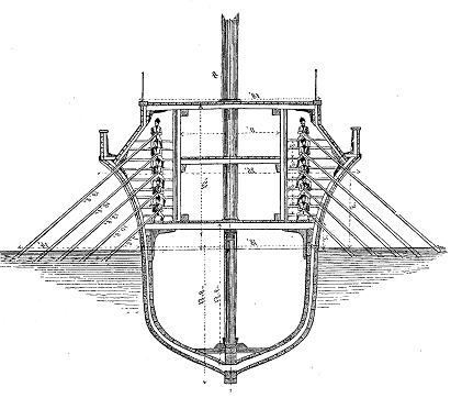 要知道,罗马人是没有能力设计五列桨座大船的,他们是从希腊人那里学来的技术,完全是照搬照抄。