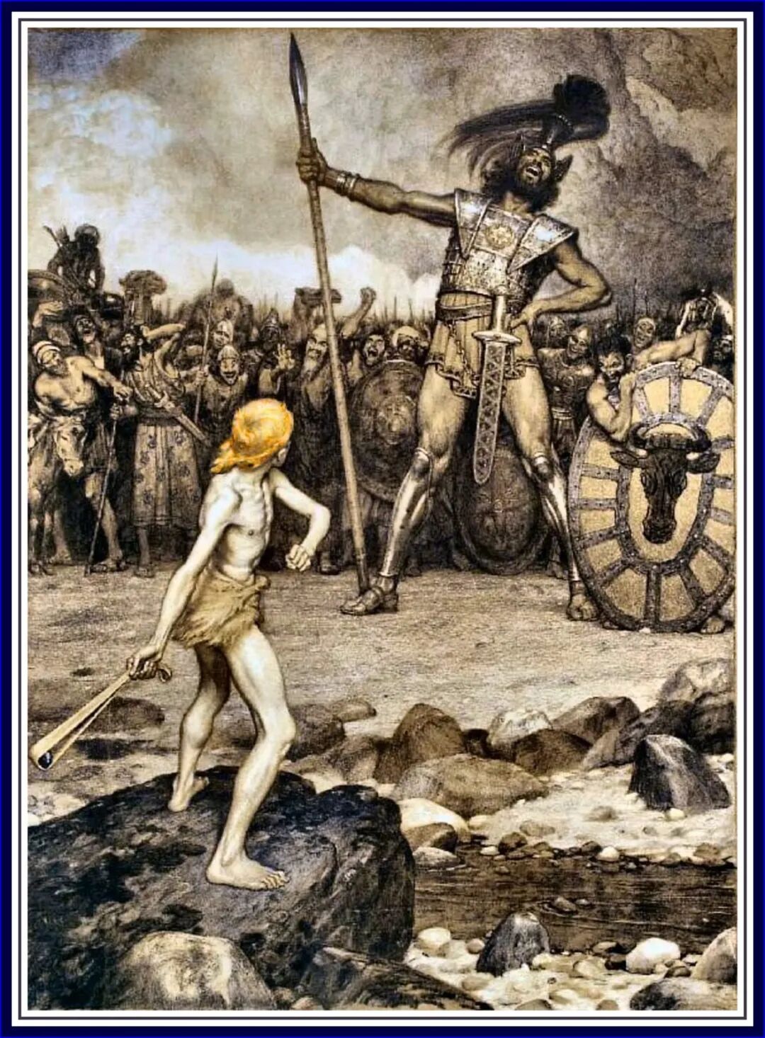 另外,《圣经》里还有个细节值得注意。歌利亚出战时全副武装,身穿重甲、肩抗铜枪,因此,即便他力大无穷,对战大卫时,也只能慢慢走向对手。