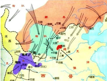 咸熙二年(265年),司马炎以“禅让”的方式代魏称帝,国号晋,史称西晋。西晋灭吴后,结束了自东汉末年以来的分裂割据局面,实现国家统一,社会比较安定。但西晋建立之初,就为其灭亡埋下祸根。先是分封宗子弟为诸王,掌地方重权。西晋的统治阶级从皇帝到大地主、大商人生活奢侈、腐败,对百姓的压榨愈加深重。最终,爆发了八王之乱,整个北方地区被战火席卷,损失惨重。这也激化了阶级矛盾和民族矛盾。一些内迁的少数民族也纷纷反抗,而少数民族的首领、贵族趁机起兵,逐鹿中原。建兴四年(316年),匈奴王刘曜攻陷长安,俘虏晋憨帝,西晋灭亡。建武元年(317年),晋元帝司马睿在建康(今南京)建都,随后,中原汉族的一些士族和百姓都随之南迁到江南。唐代刘知几在《史通》里记载:“异哉,晋氏之有天下也!自雒阳荡覆,衣冠南渡,江左侨立州县,不存桑梓。”这是中国历史上的第一次人口大规模南迁。