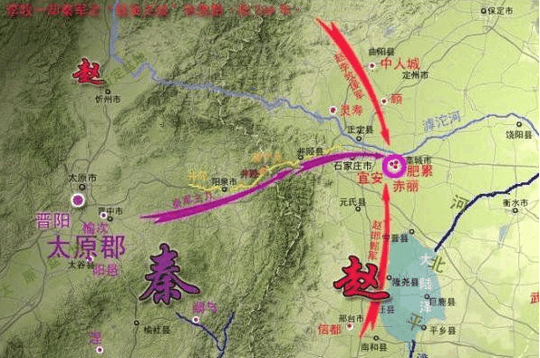 《战国策》中有一个记载:“秦、赵战于河漳之上,再战而再胜秦;战于番吾之下,再战而再胜秦。四战之后,赵亡卒数十万,邯郸仅存。”这个记载与秦军的两路出击是相吻合的。秦军一路攻邺城,邺城临黄河、漳水,即“秦、赵战于河漳之上,再战而再胜秦”;另一路秦军攻番吾,即“战于番吾之下,再战而再胜秦。”