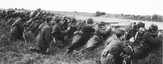一战两大阵营同盟国和协约国,一方为德国、奥匈和土耳其,另一方为英国、法国、意大利和俄罗斯。战线分东部战场,西部战场和南部战场。德国是同盟国的主角。再看奥匈帝国。奥匈也面临两条战线,东线俄国和南线的塞尔维亚。东线进攻俄国战败了,反让俄国攻入境内数百里。若说俄国块头大实力强,败了还情有可原。在南线打塞尔维亚,反被塞尔维亚教训了一翻。为复仇派大军攻入塞尔维亚境内,后被赶了出来。隔半年再次攻入塞尔维亚,随后又被塞军赶跑了。在此只能说除了塞军战斗力比较强外,奥匈军队的战斗力低到什么程度可想而知了。整个一战期间奥匈军队几乎没有拿得出手的战绩来。奥匈帝国大而不强,欧洲的黔之驴。武功不行又爱挑事儿,最后让盟友德国来买单,德国被其拖进了深渊。