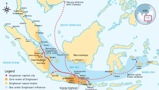 从至元十七年(1280年)前后开始,在南洋航路中拥有重要地位的爪哇王国,在其国王克尔塔纳加腊的率领下呈现出崛起的态势。他们先后吞并周边大量小国,并远征苏门答腊,灭亡了中国的传统藩属三佛齐国,高峰时将马来半岛和苏门答腊岛均纳入自己的统治之中,克尔塔纳加腊更是自称“万王之王”。