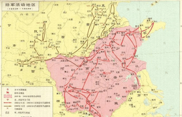 清廷在平定太平天国后,便开始对付捻军。捻军骡马中队,擅长流动作战,因此给清军造成了很大麻烦,唯一一支堪用的满蒙军队就是被捻军打得全军覆灭,蒙古亲王僧格林沁授首。曾国藩也是因为对付捻军不利下台,才换上了李鸿章。而淮军同样也打了很多败仗,大将张树珊被打死,刘铭传也差点在尹隆河全军覆没。最后李鸿章费了九牛二虎之力,大修河防工事,把中原的河流变成禁锢捻军骑兵的锁链,才终于消灭了捻军。
