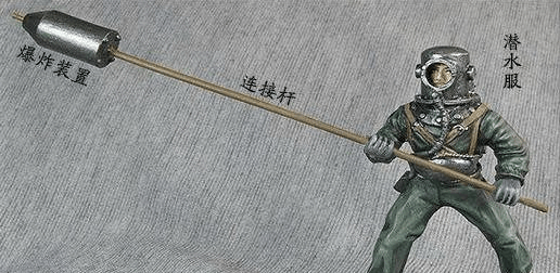 考虑到战事吃紧以及资源问题,近海的水下工事也被撤销。这样一来,“伏龙”就只剩下潜水员和一个15公斤的水雷。简化之后,“伏龙”特攻队队员就需要自己潜到水下,等待美军舰艇靠近近海。当舰队接近之后,他们就要用手上长5米的竹竿将水雷捅向目标舰支,水雷引爆之后潜水员就生死随缘了。就这般,一个排雷系统就完完全全成了一个自杀式武器。