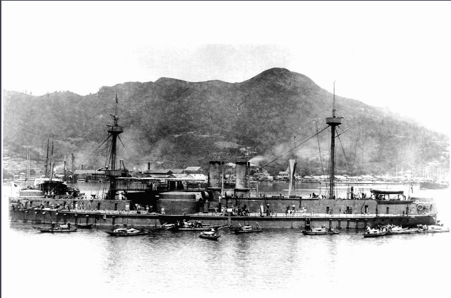 光绪二十一年(1895年)2月17日,镇远舰被编入日本舰队,列入一等铁甲战列舰,这也是日本海军第一艘铁甲战列舰。为羞辱中国人,日本舰队仍将之命名为镇远。