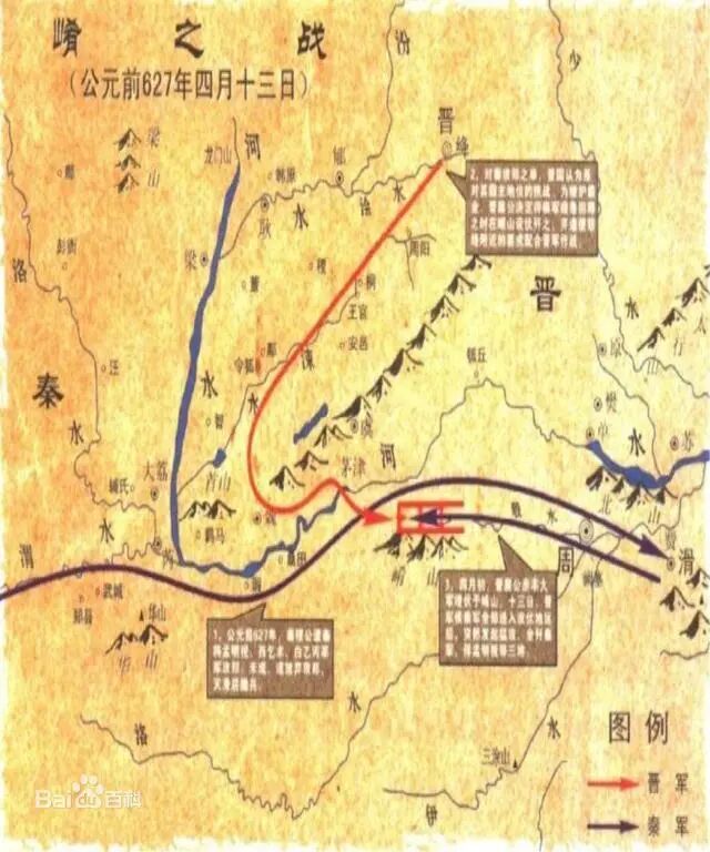 在晋文公时代,晋国又恢复了稳定和繁荣的势头,对内团结,对外打败楚国,成为了诸侯霸主,是当时最为强盛的国家。晋文公薨逝后,晋襄公继位,襄公其实也有乃父之遗风,不能说是多么有开创性才能的君主,但是作为一个守成之君,他做的还是相当出色的。而秦国那里呢,实力也不容小觑。秦穆公是一个相当有作为的君主,秦国势力范围本在关中平原的西端,最远处也只是到达凤翔一带,不仅如此,秦国所处的一地西戎势力强大,各个戎族不断侵扰。在这种艰苦卓绝的条件下,秦穆公励精图治,开地千里,“遂霸西戎”。可见当时秦晋两国的国力均不弱。秦国为了自己的发展,就必须要向东进,而东进的过程中,势必会与黄河以东汾河流域的晋国发生冲突。在这种情况下,秦晋之间虽有秦晋之好,但是战争也不可避免。